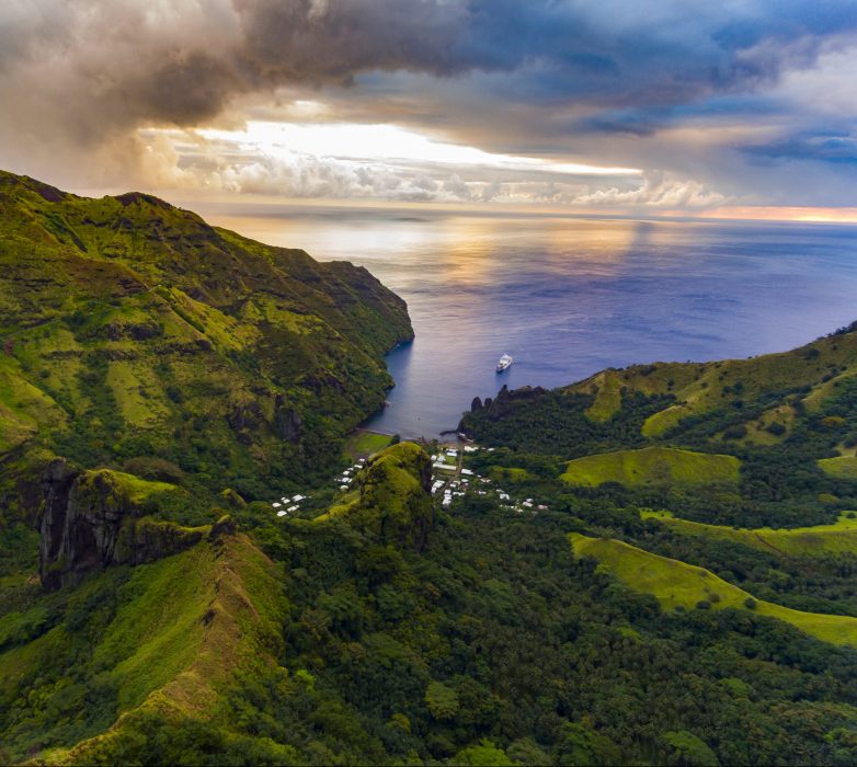 Depuis les ponts, vous verrez les flèches de montagnes uniques à Ua Pou. Tandis que l’équipage décharge des approvisionnements, du ciment, du sucre, et charge des sacs de coprah (noix de coco séchées) et de fruits, explorez le village pittoresque de Hakahau et de son église avec une estrade en bois sculptée à la main. Rencontrez les talentueux sculpteurs et artistes de l’île, grimpez jusqu’à la Croix pour une vue imprenable sur les montagnes, les vallées luxuriantes et le village principal. Un autre délicieux déjeuner Marquisien sera servi : fruit à pain, un aliment de base du Marquisien avec chèvre au curry (une spécialité des iles Marquises), poisson cru mariné dans du jus de citron et du lait de coco, taro et bananes rouges. Profitez d’une excellente performance de danse, y compris « la danse de l’oiseau », traditionnelle à UA POU.