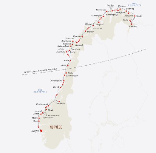 Nous traverserons le Cercle Arctique, ce qui devrait vous permettre de voir les Aurores Boréales en hiver. Nous célébrerons ce moment en organisant une cérémonie de passage du Cercle Arctique sur le pont.