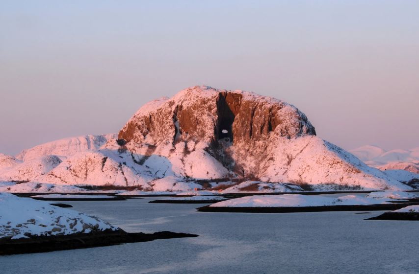 En longeant la côte du Helgeland, vous apercevrezTorghatten, une étrange montagne avec un trou en son centre. L’ouverture mesure 160 m de long, 35 m de haut et 20 m de large et s’est formée pendant la glaciation. Si le temps le permet, participez à une randonnée sur la montagne en compagnie de votre équipe d’expédition.