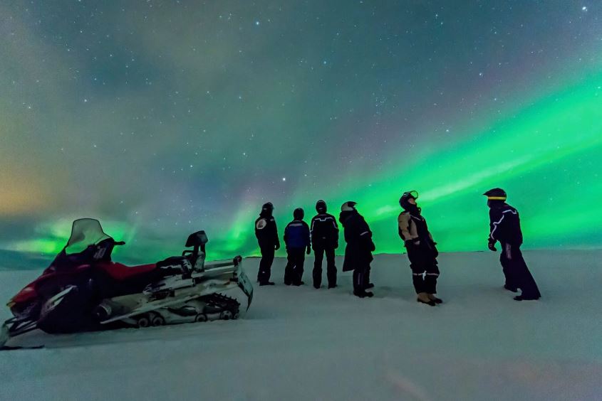 En hiver, faites une sortie inoubliable en motoneige à travers les plaines enneigées et tenter d’observer des Aurores Boréales dans le ciel étoilé.