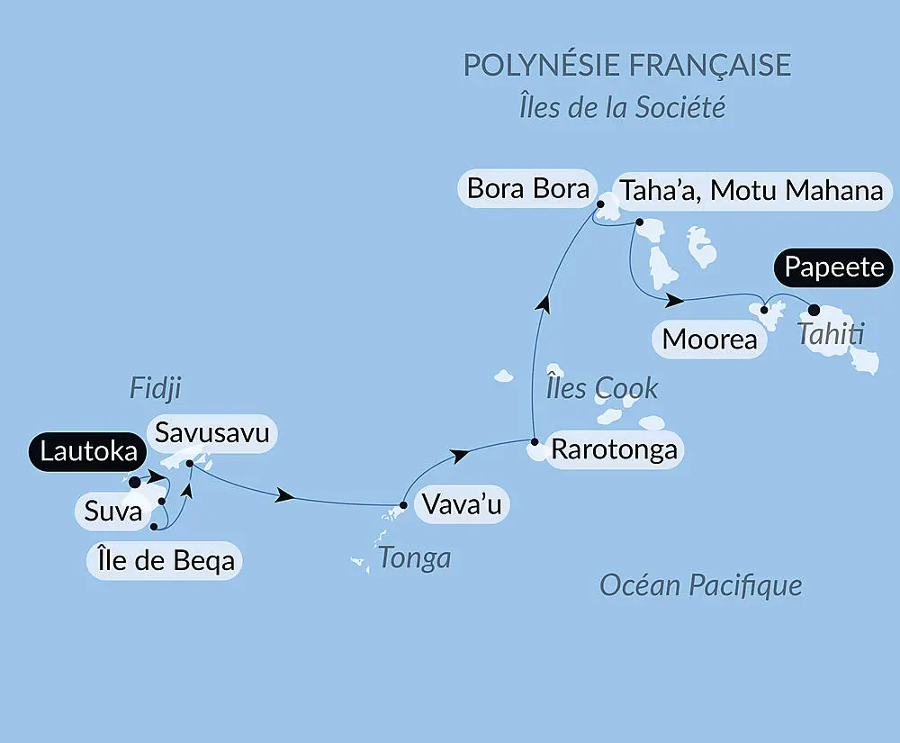 Capitale de la Polynésie française, la ville de Papeete se trouve sur la côte nord-ouest de l’île de Tahiti. Vous y goûterez une atmosphère détendue où le dynamisme citadin se mêle à la légendaire douceur polynésienne. La culture n’est pas en reste : vous pourrez profiter des sites narrant l’histoire de l’archipel, parmi lesquels la cathédrale coloniale et la maison de la reine Marau. Les jardins publics de Vaipahi vous séduiront par leur profusion végétale. L’important marché municipal vous permettra de découvrir les saveurs locales : fruits frais, épices et poissons abondent sur ses étalages.