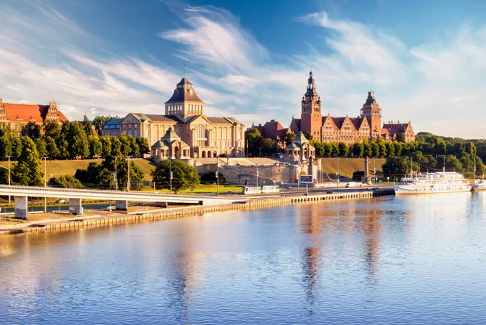 Navigation sur l’Oder et arrivée dans la matinée à Szczecin, l’ancienne ville allemande de Stettin. Visite guidée de la ville : le château des Ducs de Pomeranie du XIIe siècle, plus grande résidence de la Renaissance en Europe du Nord (vue extérieure) ; la cathédrale Saint Jacques, deuxième église la plus haute de Pologne avec sa tour massive de 110 mètres de haut et l’ancien hôtel de ville. Balade sur la pittoresque promenade Waly Chobrego le long de l’Oder puis visite de la superbe église gothique Saint-Pierre-et-Paul du XVe siècle. La structure gothique traditionnelle est dotée d’un plafond en bois peint ; au centre trône une représentationde la Sainte-Trinité. Déjeuner à bord et temps libre pour une découverte individuelle de Szczecin. Dîner et nuit à bord.