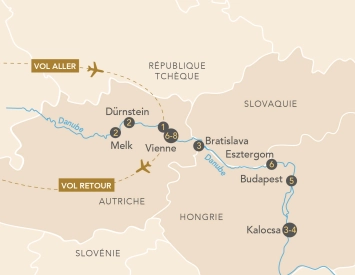 Après une nuit de navigation, vous atteindrez Esztergom. Faisant directement face à la Slovaquie, cette localité hongroise, surnommée « Petite Perle du Danube », est située au pied des monts du Pilis. Fondée par les Romains qui y laissèrent une motte castrale encore visible aujourd'hui, elle devint, à partir de 972, la capitale du royaume de Hongrie et le resta jusqu'en 1242. Elle est également le berceau du christianisme en Hongrie, car c'est à Esztergom que fut construite la première église du pays, en 975, à la demande du roi Étienne Ier. Subissant les attaques des Tartares au XIIIe siècle, puis des Ottomans au XVIe siècle, elle demeura malgré tout un centre culturel reconnu. L'originelle Várhegy (la colline du château), reconnaissable à sa somptueuse basilique, domine Víziváros (la ville basse). Le centre-ville, lui, s'étend autour de la place Széchenyi, magnifiquement rénovée en 2006. En fin d'après-midi, vous partirez en navigation vers Vienne que vous atteindrez dans la soirée.