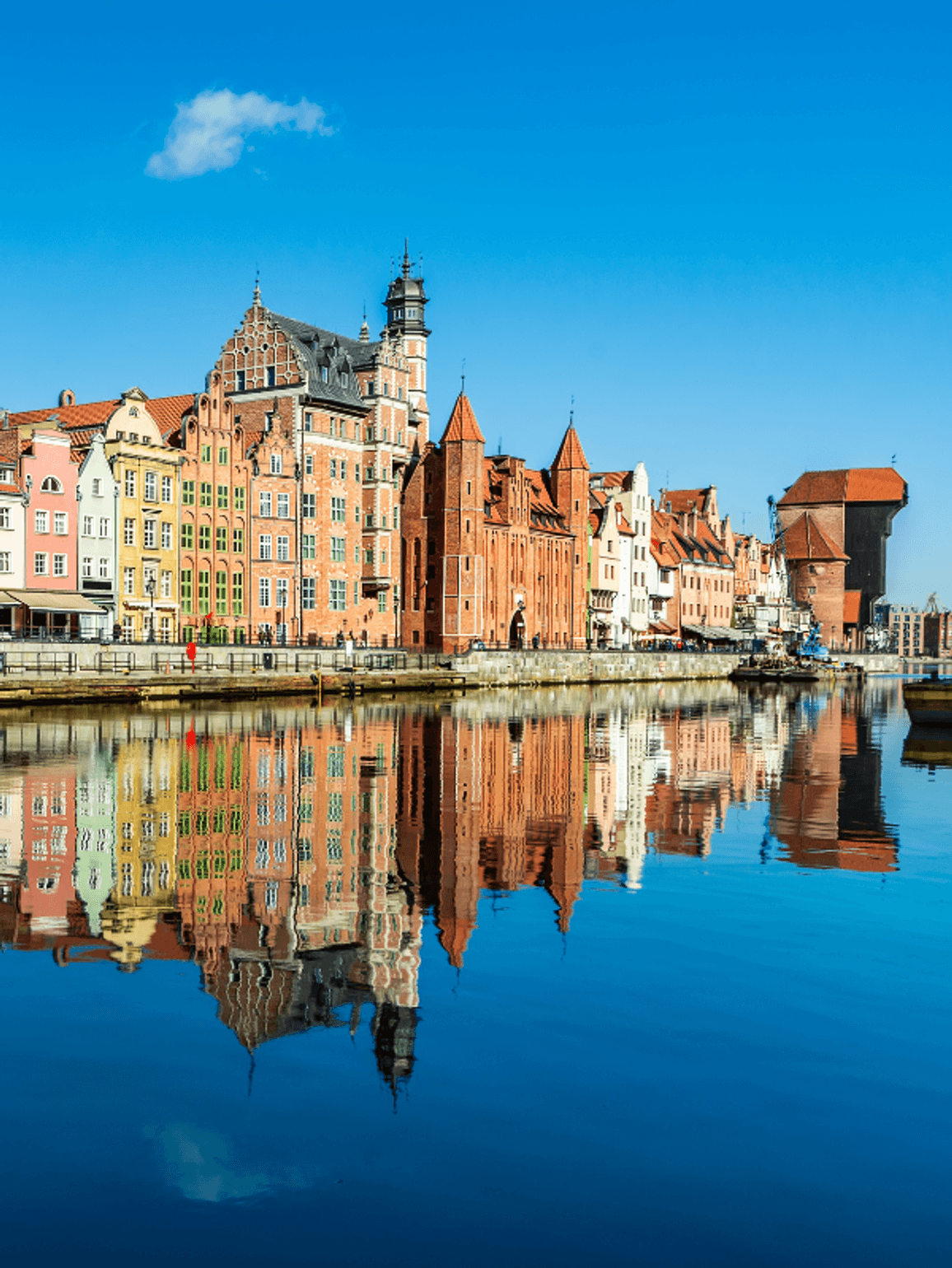 Gdańsk est une ville portuaire au riche passé hanséatique, réputée pour son architecture colorée et son atmosphère vivante. Son centre historique séduit avec la rue Długi Targ, bordée de façades élégantes, la fontaine de Neptune et l’hôtel de ville gothique. Le long de la rivière Motława, l’ancienne grue médiévale témoigne du rôle maritime de la cité. Gdańsk est aussi une ville de culture et de mémoire, abritant des musées remarquables comme celui de la Seconde Guerre mondiale et le Centre européen de Solidarność, rappelant son rôle clé dans l’histoire contemporaine.
