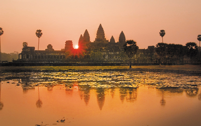 Continuation par le Temple d’Angkor Vat, le plus grand des temples du site d’Angkor, dont la majesté et l’harmonie constituent un aboutissement de l’art khmer. Les galeries extérieures, décorées de sculptures et de bas-reliefs narratifs, soutiennent un sanctuaire central, royaume des dieux.