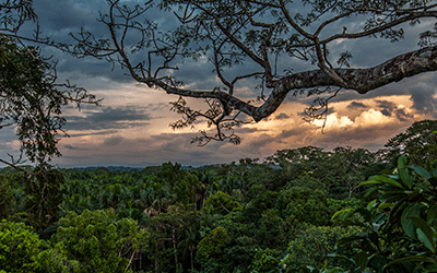 Le matin, départ à pied jusqu’à une tour d'observation construite dans un kapokier géant millénaire. Son sommet offre une vue imprenable à 360° sur la canopée de la forêt amazonienne se déroulant à l’infini. Après le déjeuner à bord, promenade dans la forêt primaire en compagnie de votre guide naturaliste afin de repérer les différentes espèces végétales et animales endémiques de cet écosystème, l’occasion d’apercevoir peut-être l’étrange hoazin, une espèce très rare d’oiseau connu aussi sous le nom de « stinkbird » (oiseau puant). Dîner et nuit à bord.