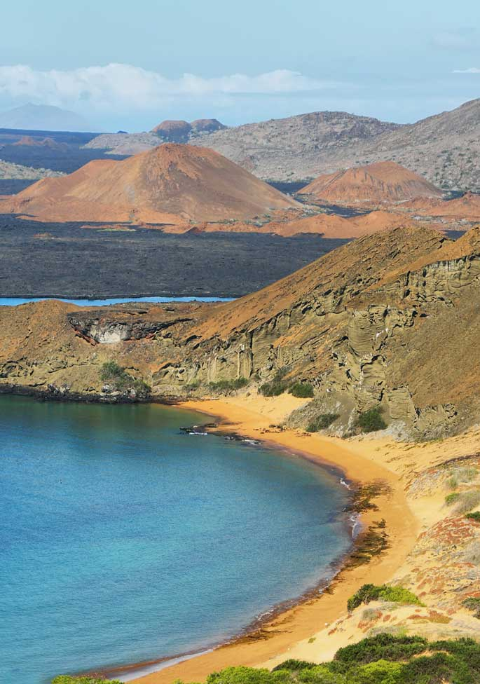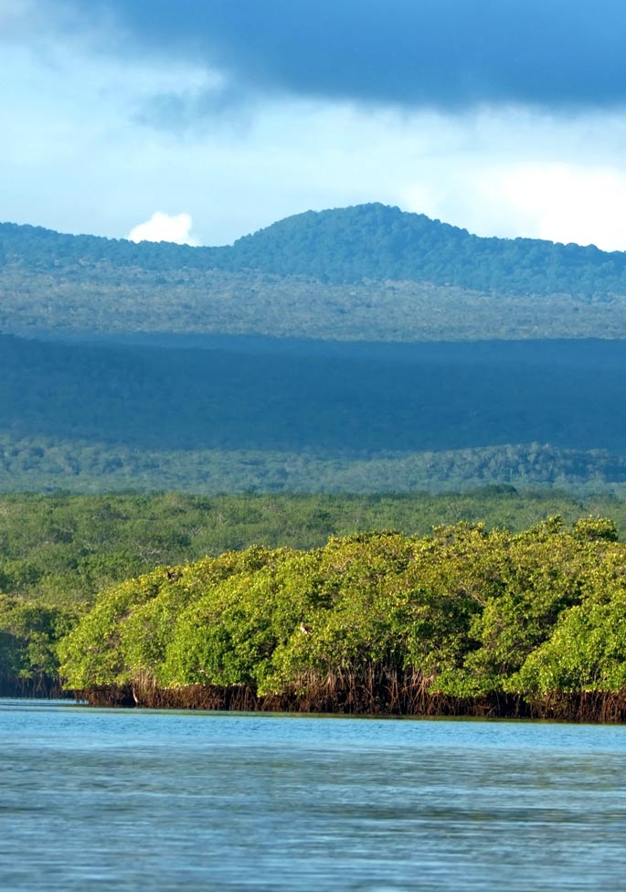 Débarquement sur l’île d’Isabela, la plus grande des îles Galapagos. Elle a été formée par l’agglomération de six volcans, dont l’un est toujours actif. Depuis la baie d’Urbina et son étonnant paysage de coraux échoués, promenade à pied (1h30 de marche environ) à la rencontre des iguanes terrestres et des célèbres tortues géantes de l’archipel. Possibilité de snorkeling et de baignade. Déjeuner à bord. L’après-midi, randonnée (2h de marche environ) à l’anse du Tage, une baie d’eau profonde qui servit autrefois de refuge aux pirates et aux baleiniers qui y ont laissé quelques graffitis, pour atteindre le lac Darwin. Nommé en hommage à Charles Darwin, quand le HMS Beagle jeta l’ancre dans la baie en 1835, le lac occupe une ancienne caldeira, d’où la vue est époustouflante. Possibilité de snorkeling et de balade en kayak (en supplément). Dîner et nuit à bord.