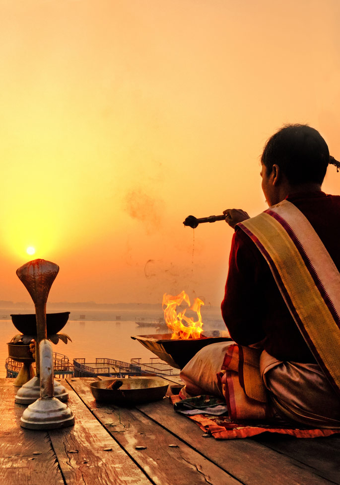 Dès les premiers rayons du soleil, une promenade en bateau local permet de vivre et de mieux appréhender les nombreux rites pratiqués dès l’aube. Retour à l’hôtel pour le petit déjeuner. Puis route vers Sarnath, à une dizaine de kilomètres de Bénarès. Ce site est un lieu très important de la religion bouddhiste. C’est à cet endroit que Bouddha a proclamé son tout premier sermon avant d’atteindre l’illumination il y a plus de 2 500 ans, posant les grands préceptes du bouddhisme. Visite du site comprenant les stupas et le musée archéologique. Après le déjeuner au restaurant, retour à Bénarès. En fin d’aprèsmidi, promenade pour ressentir la magie des rituels du crépuscule. Les rives du fleuve sacré sont aménagées en une succession d’immenses ghats (escaliers), bordés de temples. La ferveur est ici tangible et se transmet au voyageur pour couronner son périple indien. Dîner et nuit à l’hôtel.