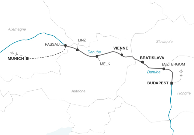 Débarquement à Passau et transfert à l’aéroport de Munich (durée : environ 2h). Envol sur vol régulier.