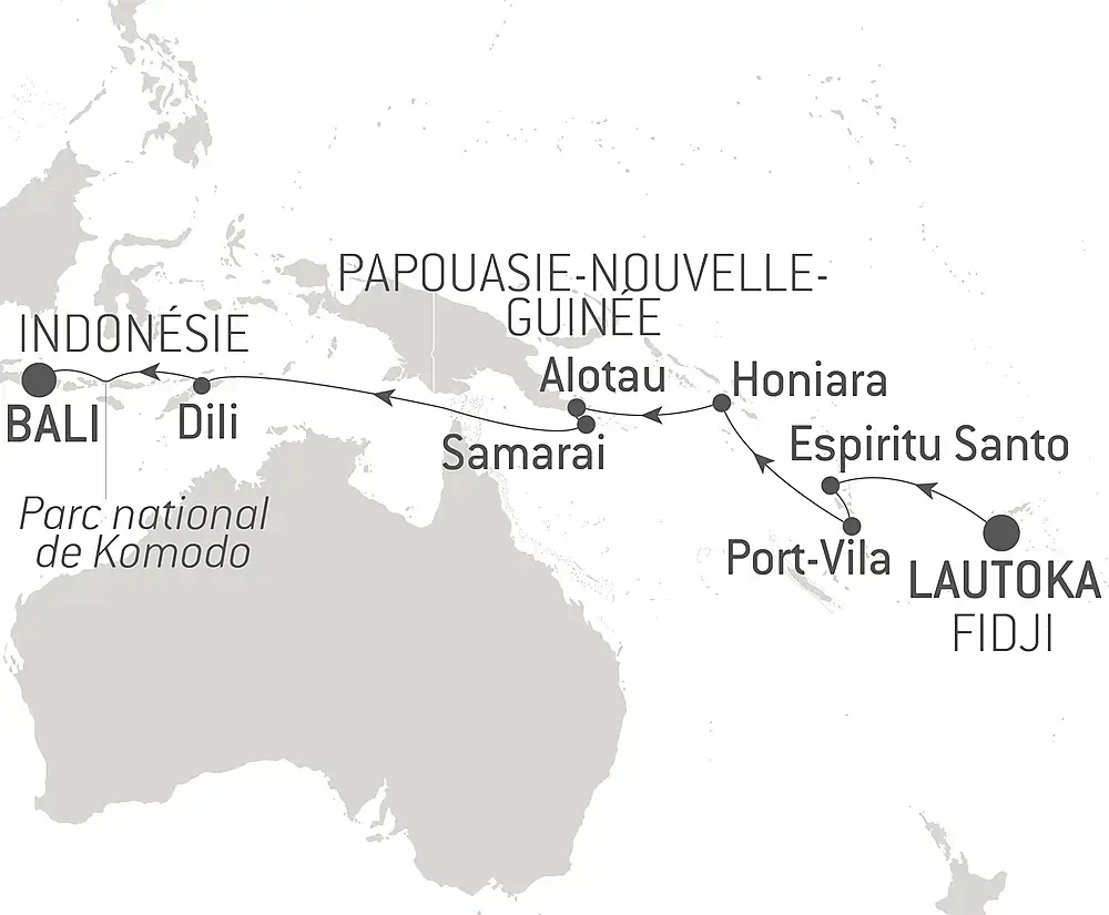 Alotau, capitale de Milne Bay, est située sur la côte sud-est de la Papouasie-Nouvelle-Guinée. Sur plus de 600 îles, 160 restent inhabitées. Les populations locales, chaleureuses et accueillantes, font des villes de Papouasie-Nouvelle-Guinée un véritable havre de paix. Au cours des années, la province de Milne Bay a été visitée par des missionnaires, des perliers et des navires de guerre japonais et américains, qui ont laissé les traces de leur passage, notamment au cours de la bataille de Milne Bay lors de la guerre du Pacifique. Durant votre escale, partez avec votre équipe d’expédition à la découverte des marchés de la ville, du mémorial de la bataille et des vestiges de la Seconde Guerre mondiale.