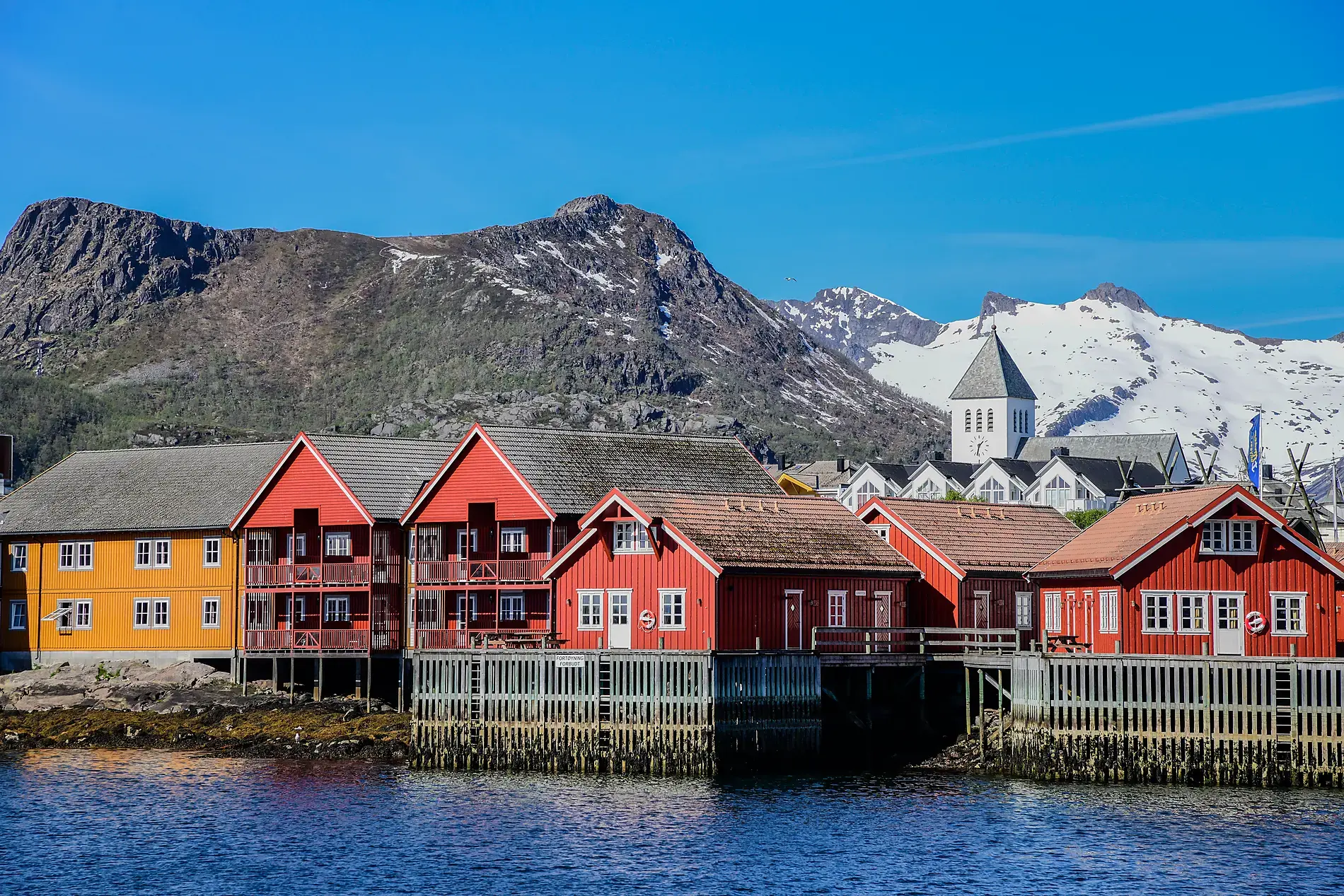 Située sur l’île d’Austvågøy, dans le comté du Nordland, Svolvær sera votre point d’entrée idéal pour découvrir les îles Lofoten. Port d’escale important du nord de la Norvège, la pêche compte également parmi les fleurons de la ville. Sa spécialité ? La morue. Au faîte d’une colline, l’église luthérienne, tout de blanc vêtue, s’élève au-dessus des maisons multicolores. Plus haut encore, le piton rocheux dit « la Chèvre de Solvær », surplombe la ville. Coiffé de ses deux pics évoquant les cornes de l’animal, il est l’une des attractions naturelles incontournables de la région.