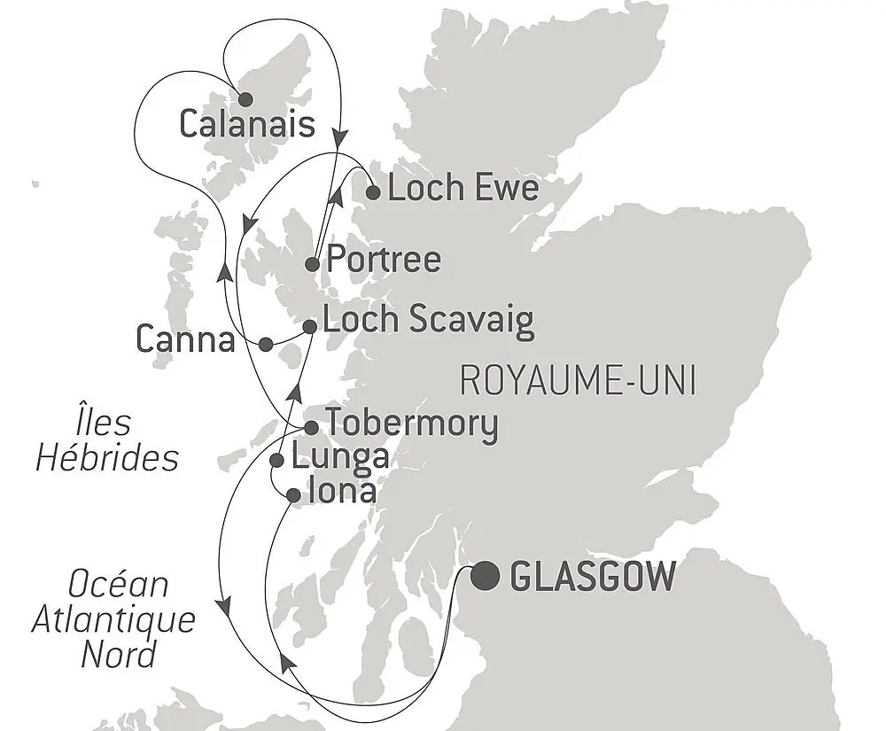 L’archipel des Hébrides possède des trésors naturels, parmi lesquels, Canna, un îlot préservé, joliment surnommé le « jardin des Hébrides ». Habité depuis le néolithique, Canna ne compte aujourd’hui qu’une vingtaine d’habitants mais dévoile un territoire à l’histoire riche où se sont succédé chrétiens, moines celtes, colons nordiques et communautés écossaises qui ont laissé chacun des traces de leur passage, monuments, églises ou croix celte en héritage. Vous prendrez le temps de savourer la beauté de la nature entre terre et océan, de la diversité des espèces florales au ballet captivant des oiseaux marins, parmi lesquels les guillemots, venus nicher sur ses espaces protégés.