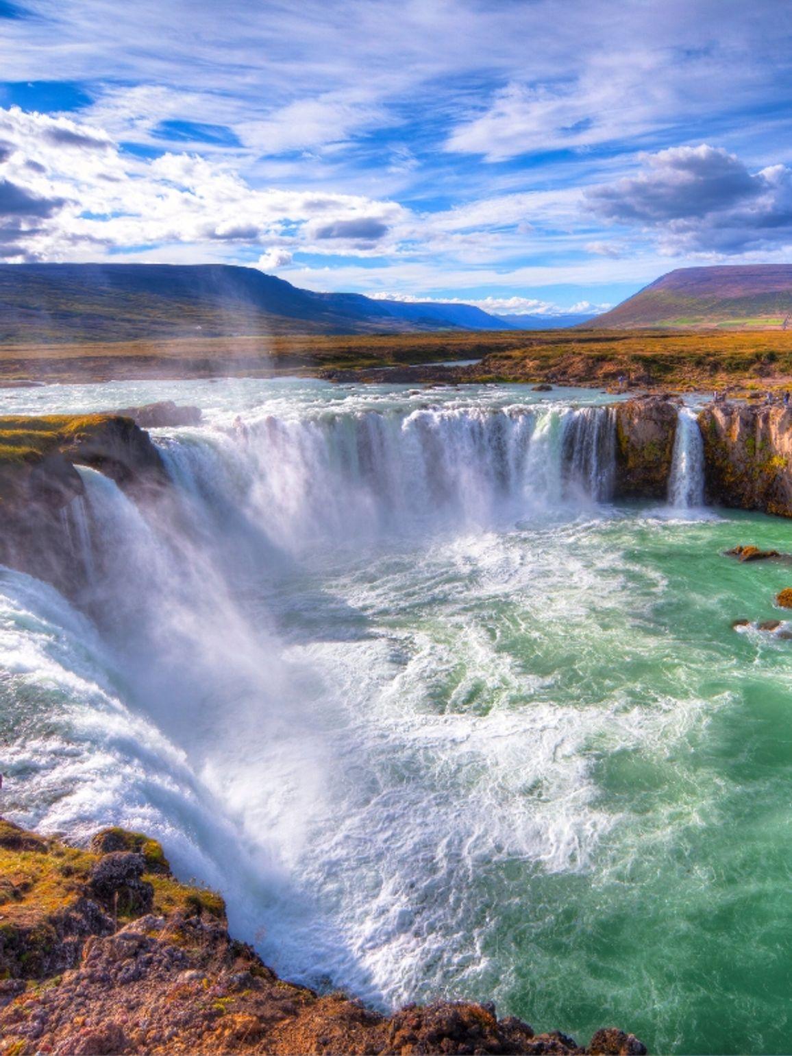 Surnommée la « capitale du Nord » de l’Islande, Akureyri est nichée au fond du fjord Eyjafjörður, entourée de montagnes majestueuses. Habité depuis le IXe siècle, ce port prospère s’est développé au XIXe siècle grâce à la pêche et au commerce maritime. Son centre-ville animé abrite des maisons traditionnelles colorées, des cafés chaleureux et l’église d’Akureyri, construite en 1940 par Guðjón Samúelsson, l’un des architectes les plus renommés d’Islande. Le jardin botanique d’Akureyri, situé à quelques pas du centre, est l’un des plus septentrionaux au monde, accueillant des centaines d’espèces de plantes arctiques et alpines. Le port, dynamique, constitue un point de départ idéal vers les merveilles naturelles de la région, notamment les chutes de Goðafoss et les paysages volcaniques du lac Mývatn.