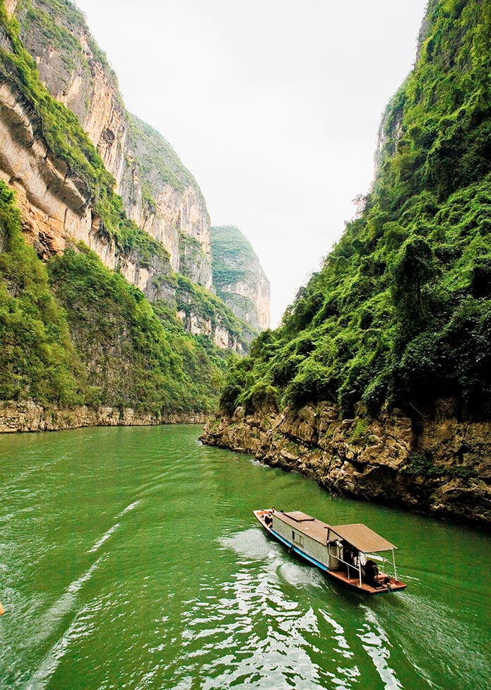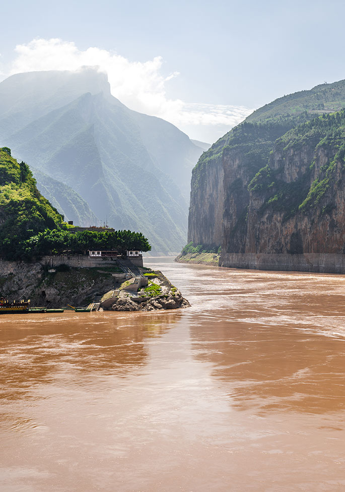 Tôt le matin, passage de la gorge de Qutang, la plus courte et la plus étroite des Trois Gorges. Débarquement à Wushan et découverte, à bord de sampans, des Trois Petites Gorges de la Daning, un affluent du Yangtsé. Au fil de la navigation, se découvre un paysage extraordinaire composé de pics, de collines verdoyantes où jouent les singes dorés, et de cascades. Les falaises semblent à portée de main et sur les parois, les cercueils suspendus du peuple Ba témoignent d’une présence humaine millénaire. Déjeuner à bord. En début d’après-midi, passage de la gorge de Wu, célèbre pour ses versants abrupts et ses pics aux noms inspirants : pic de la Déesse, du Phénix volant, du Dragon grimpeur. Arrivée au grand barrage des Trois-Gorges en début de soirée. Passage du gigantesque escalier d'écluses à 5 niveaux dans la soirée et la nuit. Dîner et nuit à bord.