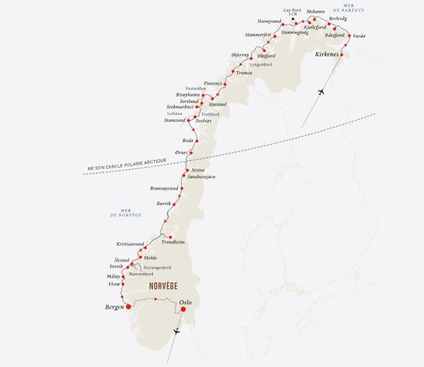 ATTENTION, en fonction des rotations aériennes, la nuit à Kirkenes pourra être remplacée par une nuit à l’aéroport d’Oslo et le vol Oslo/Kirkenes sera programmé tôt le jour 2. Plus d’information au moment de la confirmation de votre voyage.