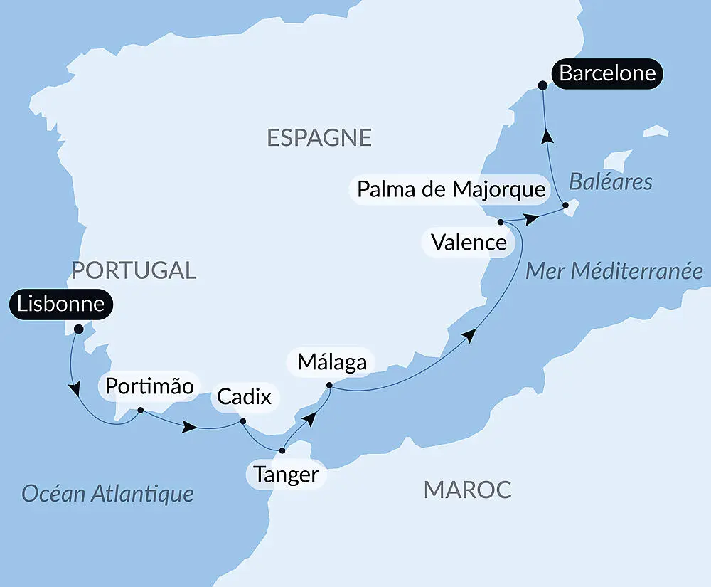 Criques idylliques, majestueuses falaises de calcaire plongeant dans les eaux saphir et turquoise transparentes de la Méditerranée, vastes plaines plantées d'amandiers, d'oliviers et de vignobles, Palma de Majorque vous dévoile la richesse de ses trésors. Lors de votre escale au cœur de la capitale des îles Baléares, profitez d’une balade pour découvrir ses monuments emblématiques comme la célèbre cathédrale, tout en déambulant dans ses vieilles ruelles. Ici, comme un tableau, le patrimoine historique de l’île sert de toile de fond à l’ambiance cosmopolite, animée et chaleureuse de la Méditerranée.