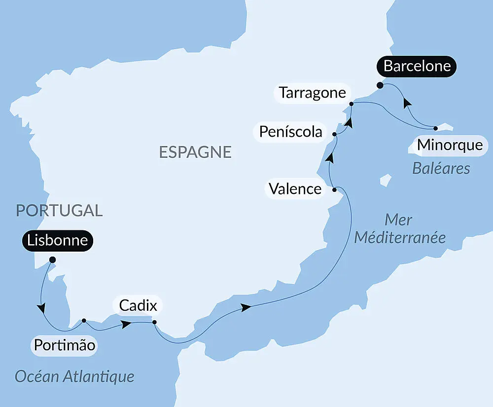 Tarragone est située sur la Costa Daurada, au sud de la Catalogne. L’ancienne Tarraco des Romains présente de très importants vestiges archéologiques et architecturaux dans un excellent état de conservation. Cette richesse patrimoniale lui a valu d’être classée au patrimoine mondial de l’Unesco en 2000. Ne manquez pas la visite du grand amphithéâtre romain, admirablement préservé et situé dans un site naturel magnifique en bord de mer et du cirque romain. Flâner dans les rues de la vieille ville médiévale jusqu’à la cathédrale achevée au XIVe siècle complète agréablement votre escale dans cette ville accueillante.
