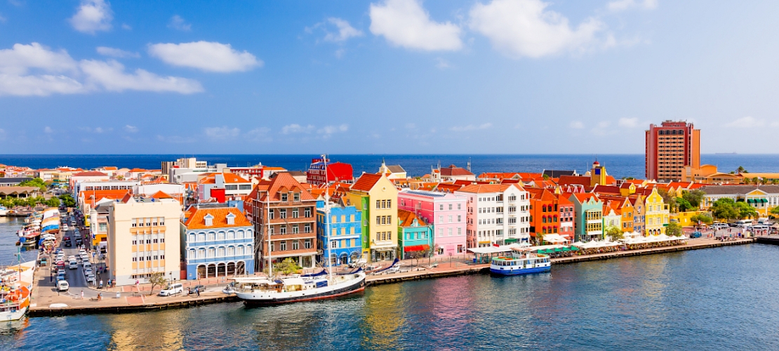 La superbe île Curaçao est située dans les Petites Antilles. Aujourd’hui pays autonome au sein du Royaume des Pays-Bas, elle fait partie des îles sous le Vent à 75 kilomètres au nord du Venezuela. Réputée pour ses plages recouvertes de sable blanc, ses étonnantes maisons colorées et sa succulente cuisine, vous êtes sûr d’y passer un moment inoubliable. La capitale Willemstad, en raison de son exceptionnelle architecture hollandaise traditionnelle, a été inscrite sur la liste du patrimoine mondial de l’UNESCO en 1997. Ses maisons couleur pastel, son canal et ses ruelles en pierre rappellent un peu Amsterdam, mais dans un cadre tropical.